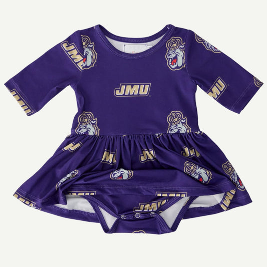 JMU Dukes Toddler/Youth 3/4 Sleeve Pocket Twirl Dress